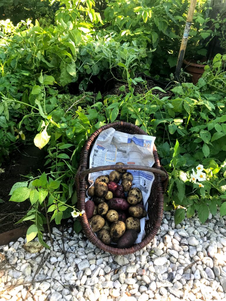 Nun sind 3 Monate vergangen und die Kartoffeln sind wahnsinnig gut gewachsen. Zwischendurch haben wir 1x mit Gründünger (hauptsächlich Brennnesselmulch) gedüngt. Wir können es kaum erwarten, zu ernten 🙂